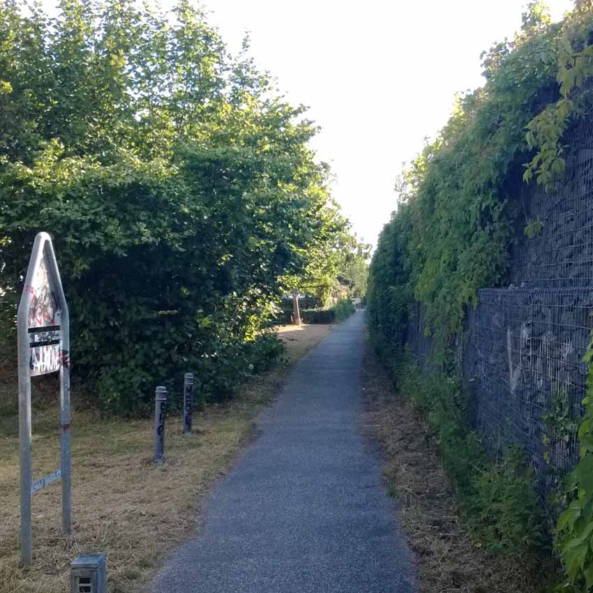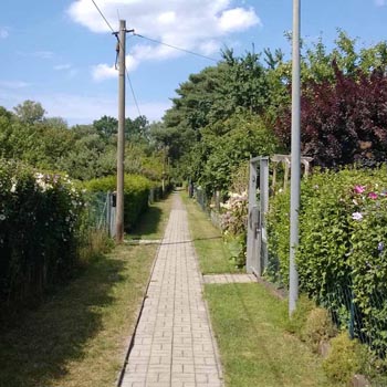 a) Zu Beginn der Etappe können bei den Kleingärten am Kleinen Rohrpfuhl Tore verschlossen sein, dann einfach auf dem Lockenhuhnweg umgehen.